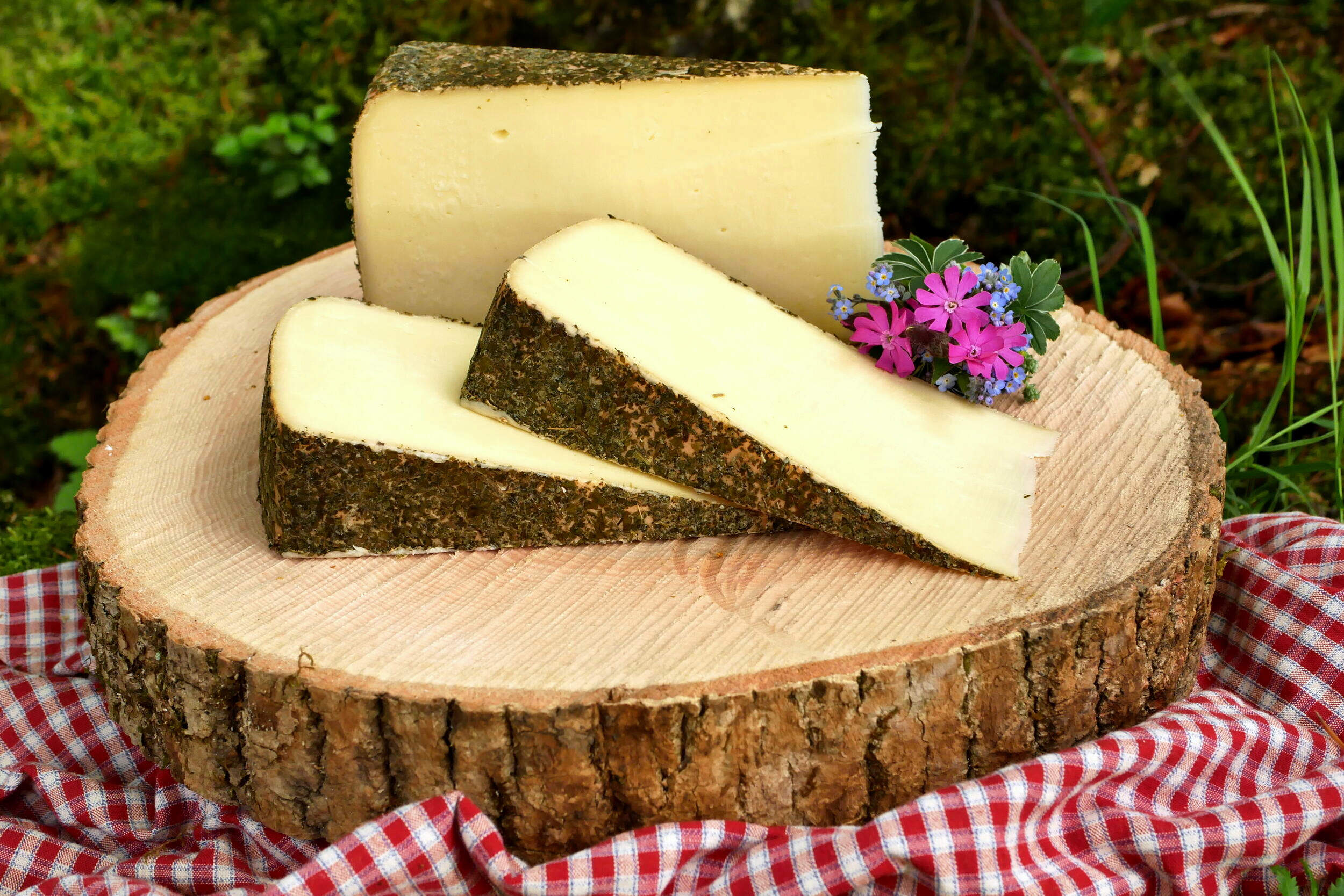 Der Alpenkräuter ist ein fein cremiger Schnittkäse aus pasteurisierter Milch. Ein besonderer Genuss für Auge und Gaumen ist die essbare Rinde mit feinen Alpenkräutern.